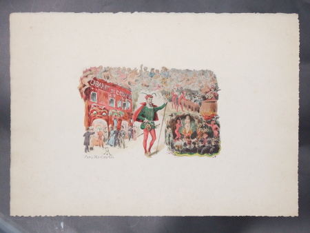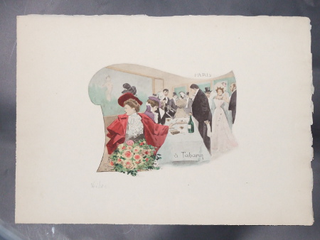 A Tabarin - Paris-Montmartre watercolor lithograph c 1899 - drawing of 4x6 inches in the center of a 9x12 sheet
