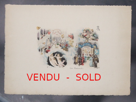 Le néant - Paris-Montmartre watercolor lithograph c 1899 - drawing of 4x6 inches in the center of a 9x12 sheet